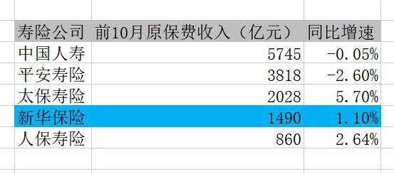 日前,新华保险发布2022年前10月保费收入公告。前10月,新华保险共实现原保险保费收入1489.92亿元,同比增长1.09%。
