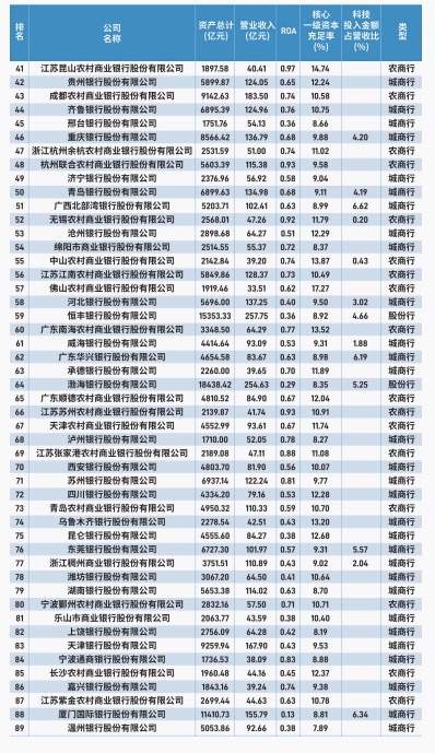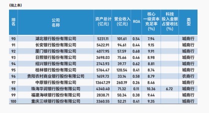 其中,“规模100强”聚焦总资产、总负债、贷款与存款等核心规模指标;“盈利100强”重点反映营业收入、净息差、ROA、ROE等盈利能力;而今年的“成长性100强”则在原有基础上引入营收增速、核心一级资本充足率、成本收入比以及科技投入及其占比等维度,力求从业务扩张、资本实力、运营效率与未来潜力等方面,更立体地呈现银行的发展动力。