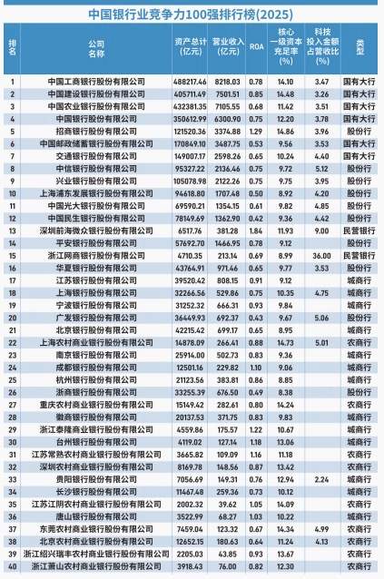 记者注意到,浙江省共有16家银行入选“2025中国银行业竞争力100强排行榜”,覆盖股份行、城商行、农商行与民营银行。