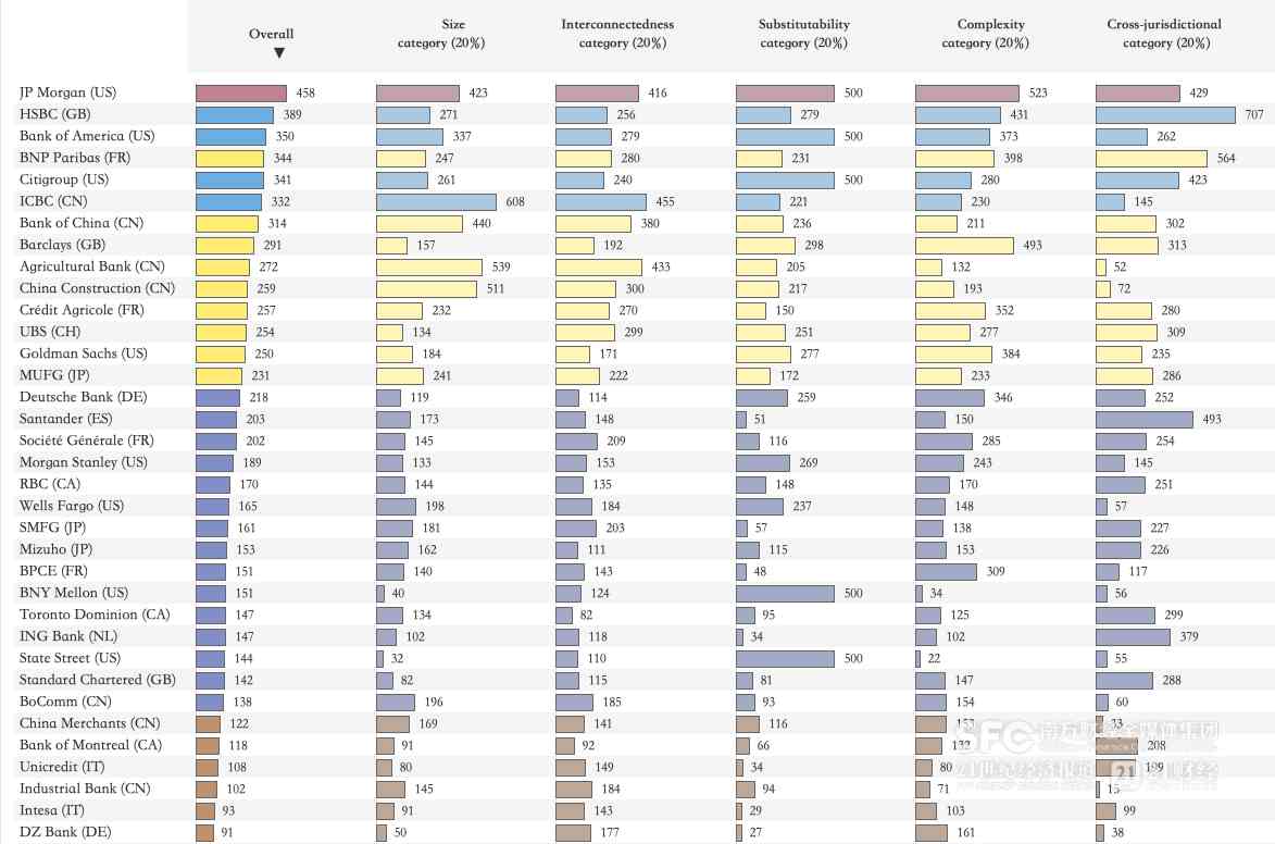 不过,上述名单信息量较为有限。21世纪经济报道记者注意到,制定G-SIBs评分框架的巴塞尔委员会在11月27日发布了涵盖77家银行评分信息的报告,比上述的29家多出了48家。