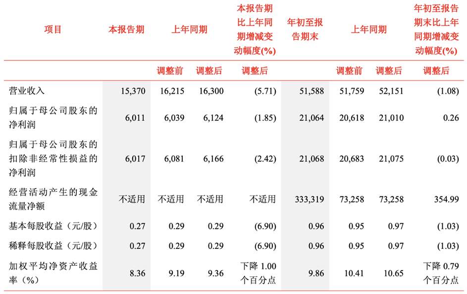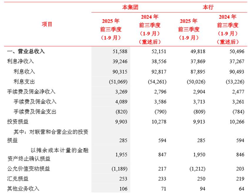 北京银行2025年第三季度营业数据,来源:北京银行财报