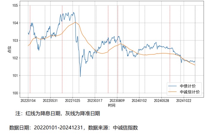 图:中诚信材料中列举的一只个券中债计价和中诚信计价的区别,中诚信计价明显波动更小